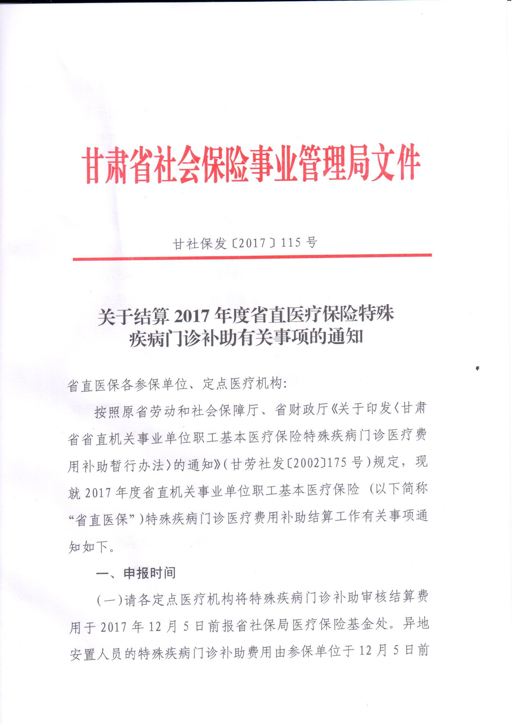 关于结算2017年度省直医疗保险特殊疾病门诊补助有关事项的通知