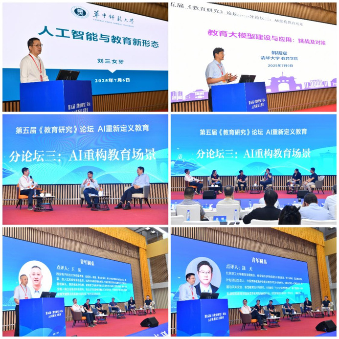 武汉理工大学杨宗凯教授主持“AI重构教育场景”分论坛。华中师范大学刘三女牙教授阐述了人工智能与教育新形态方面的思考,清华大学韩锡斌教授分享了教育大模型建设与应用中的挑战与对策;香港中文大学(深圳)当代教育研究所唐江澎所长与北京第一实验学校李希贵校长进行专家对话;华中师范大学陈敏、北京师范大学刘嘉豪、江南大学马志强、上海市黄埔区卢湾一中心小学校长吴蓉瑾、清华大学于济凡在青年圆桌环节展开学术探讨,西安电子科技大学王泉教授、北京理工大学嵩天教授进行点评。
