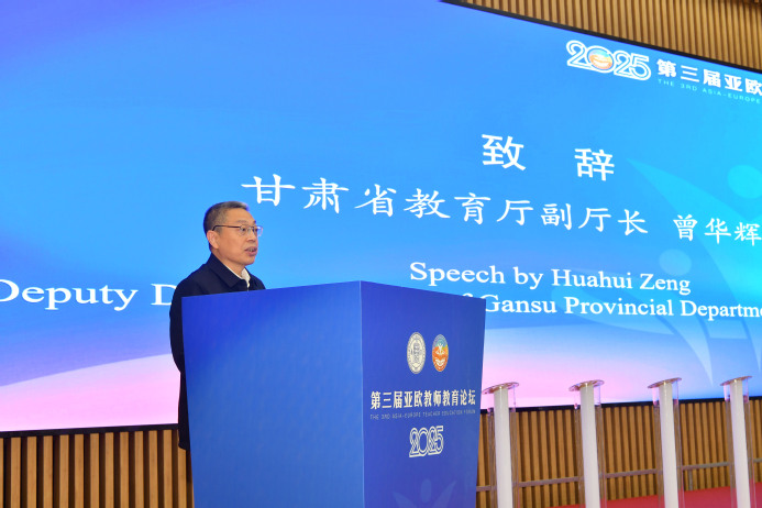曾华辉在致辞中表示,近年来,甘肃省立足国家向西开放的战略布局,牢牢把握“一带一路”建设机遇,坚持“有序开放、国际视野、甘肃特色”的发展思路,持续推动教育对外交流合作走深走实。希望与会专家学者通过本次论坛,聚焦教师专业成长、教育数字化转型、教育公平与质量提升等前沿议题,畅所欲言、汇智聚力,为构建国际教师教育合作机制、服务“一带一路”建设和人类命运共同体贡献智慧与力量。